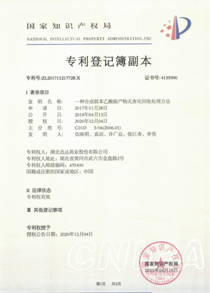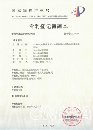 公司擁有一支高素質(zhì)科研隊伍,具備專業(yè)而高效的研發(fā)能力。近幾年,共取得科技成果30項,其中9項獲國家發(fā)明專利,2項獲湖北省科技進步獎,開發(fā)新產(chǎn)品8個,綠色合成、手性合成和催化等技術(shù)引領行業(yè)發(fā)展。主要銷往歐美、日本、韓國、中東、印度等40多個國家和地區(qū)。
